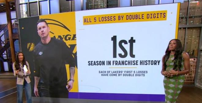 赛后,转播方在节目中复盘了本赛季湖人队的战绩。湖人队在本赛季的5场失利中分差全部上双,这是他们队史上首次出现这样的情况。 目前湖人队以15胜5负排名西部第二。