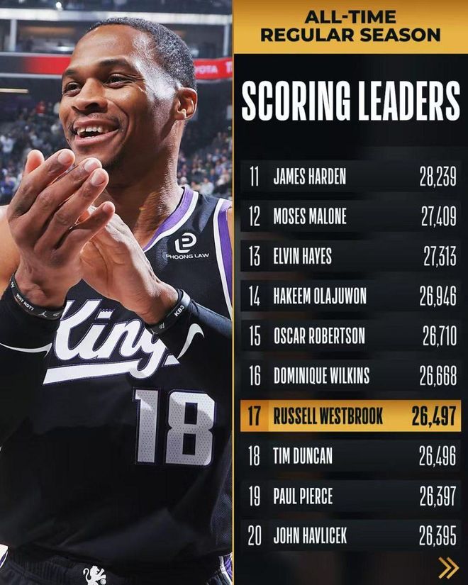 威少12+9总分超邓肯迎里程悲 难阻火箭三核72分吞