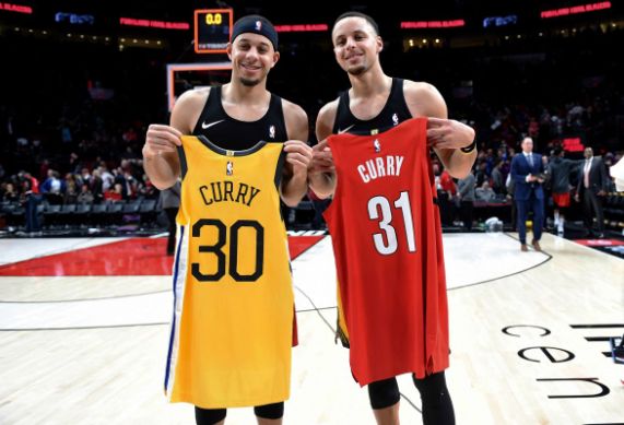 这份出色成绩下,当初那些认为他靠 “库里光环” 才能登陆NBA的声音终于全部消失,球队主教练、核心队友都对他给出了极高肯定。 但可惜的是,就在一切即将步入正轨,逐渐打出名声之时,意外遭遇左脚旧伤赛季报销;但好在开拓者还是愿意给他一份一年底薪合约机会。 整个2018-19赛季,塞斯·库里担任开拓者双枪替补,成为球队外围射手火力;西部决赛开拓者对战勇士,塞斯·库里和斯蒂芬·库里也成为NBA第一次在分区决赛交手的兄弟球员,而赛后二人交换球衣的画面,也成为了NBA历史经典一幕。 对于这一对兄弟,不少舆论都曾表示,在库里兄弟对决的系列赛中时,二人的父母会如何选择支持的一方。从球衣来看,父母二人一直是一人穿一件以示公平。
