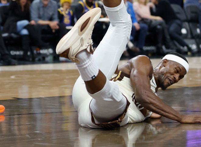 那这么打巴特勒能坚持多久?以史为鉴,我们能从过去找到答案。最典型的例子就是22-23赛季,常规赛巴特勒出战64场,带队艰难拿到附加赛门票,搭上季后赛末班车后,一路杀到总决赛,最终输给掘金。而此后一个赛季,巴特勒只打了60场常规赛,他和热火总裁帕特莱利的矛盾爆发了,莱利指责巴特勒没有稳定出勤率,在和对手嘴炮前,想想自己能不能打比赛。因此也不愿意给巴特勒顶薪,这才有了之后一个赛季彻底决裂,被送到勇士一事。已经年满36岁的巴特勒,没有稳定的投射效率,基本以持球单打和串联为主。