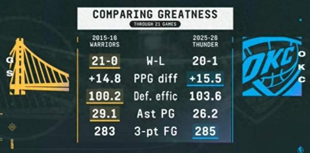 雷霆以124-112轻取勇士,豪取13连胜,将本赛季战绩改写为惊世骇俗的21胜1负。这支平均年龄仅23.8岁的青年军,用一场又一场屠杀式的胜利,向整个联盟宣告:属于雷霆的时代,已经来了。当年的“宇宙勇”曾在2015-16赛季以73胜9负震惊世界,可如今的雷霆,正在用更年轻、更健康、更可持续的方式,重现甚至超越那段传奇。21胜1负的开局,仅次于那支73胜勇士的21胜0负。