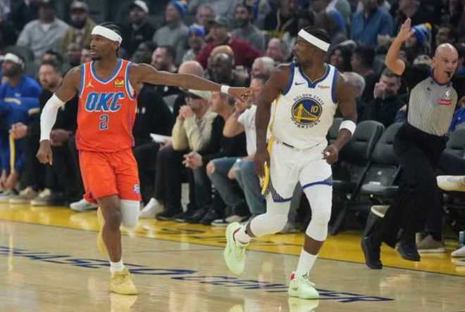 首节比赛,亚历山大打满12分钟,5中3得到10分2板1助攻;巴特勒出战8分钟,2中0未得分,仅得到2板1助攻。 次节回来,巴特勒接球干拔三分强投命中,一人连得6分将分差缩小至2分。肯威接球三分命中止血,米切尔突破挑篮再中,雷霆回敬一波5-0打停勇士。赛思-库里后撤步压哨中投命中,拿下勇士生涯首分。巴特勒接球时右脚掉鞋出现失误,肯威抢断后反击上篮再打进,雷霆领先到11分。格林三分跳投不中后再被造进攻犯规,杰威反击跳投再中,雷霆将分差拉开至15分。理查德里突外投个人连得5分,亚历山大反击跳投打进成2+1,一人连砍9分回应,半场战罢,雷霆63-44领先勇士19分。