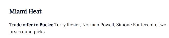 11、夏洛特黄蜂 交易报价:布兰登・米勒、迈尔斯・布里奇斯、科林・塞克斯顿、两个首轮选秀权 雄鹿本可能要求黄蜂送出拉梅洛・鲍尔,但这位核心后卫近期已否认交易传闻。事实上,鲍尔与字母哥的组合极具看点——字母哥的运动天赋与接球快攻能力,能与鲍尔的传球视野完美契合。若缺少鲍尔,黄蜂则需用状元秀布兰登・米勒加大量选秀权作为补偿。 12、迈阿密热火 交易报价:特里・罗齐尔、诺曼・鲍威尔、西蒙娜・丰特基奥、两个首轮选秀权 与公牛类似,热火的报价同样以到期合同为核心。自从吉米・巴特勒离队后,热火便在积极寻找巨星球员,而帕特・莱利擅长招募超级巨星的加盟。更重要的是,有消息称雄鹿并非追求最大利益交易,而是倾向于满足字母哥的下家意愿——若字母哥赴迈阿密,这笔交易的可能性将大幅提升。