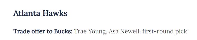 10、亚特兰大老鹰 交易报价:特雷・杨、阿萨・纽厄尔、一个首轮选秀权 特雷・杨是联盟顶级三分射手与组织者,但防守短板严重拖累老鹰战绩。而曾获年度最佳防守球员的字母哥,恰好能弥补这一缺陷。对雄鹿而言,得到特雷・杨这样的进攻核心,也能让球队重建期的进攻火力得到保障。