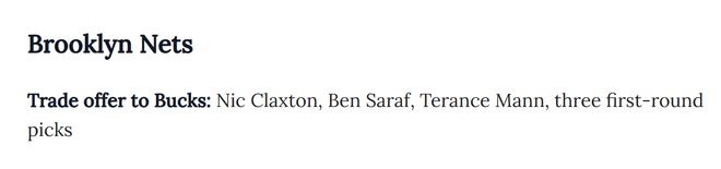 4、费城76人 交易报价:乔尔・恩比德、一个首轮选秀权 如果不受伤的恩比德,搭上首轮签还能博得雄鹿的一眼,但是现如今,雄鹿不会傻到去豪赌恩比德仍能找回巅峰状态。