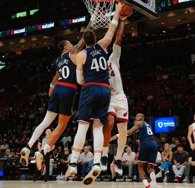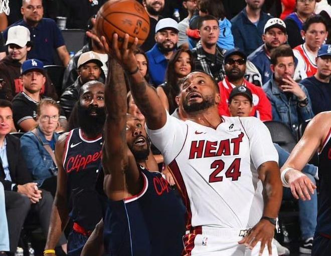 NBA常规赛,热火主场迎击快船队,本场比赛之前,快船5胜15负排名西部倒数第3,近期遭遇了4连败,这个开局属实令人想不到。毕竟休赛期,快船对阵容还进行了大力补强,引进一批经验丰富的老将,队内也不缺乏小卡,哈登这样的球星。可惜可惜现在阵容实在太老,没什么活力了,再加上伤病也多,比尔刚来就赛季报销,前20场只赢5场,接下来还想冲击季后赛,难度真的不小了。另一边的热火队,本场比赛之前,13胜7负排名东部第4,虽然没有了巴特勒,但热火强队底蕴还在,本赛季他们依旧能处于强队行列。