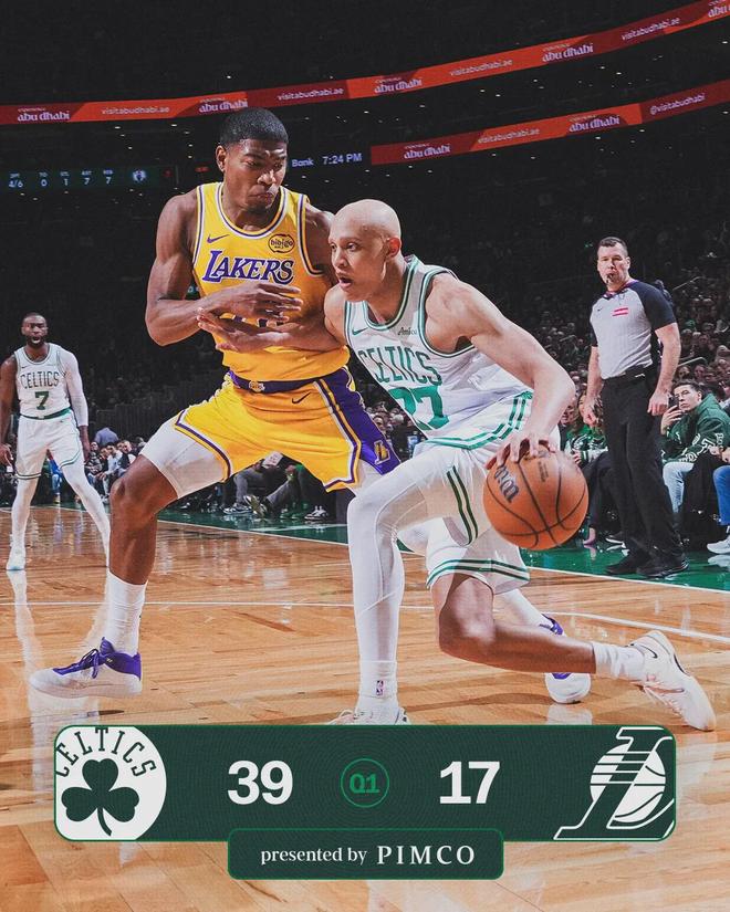 昨天湖人险胜猛龙,里夫斯狂砍44+5+10,本赛季场均28.9分5.7篮板6.8助攻1.2抢断。明年休赛期,里夫斯将跳出合同,最多能跟湖人签下5年2.4亿的续约合同。说回比赛,第一节里夫斯遭遇严防,单节5投0中,仅拿到2分3助攻。 首节战罢,凯尔特人39-17领先湖人22分,这比赛一节就打花了。怀特单节三分5中3砍下9分,昨天绿军打奇才,怀特砍下30+7+9。没有东契奇喂饼,艾顿也不灵了,单节4中1得到2分4篮板。第二节开始,凯尔特人最多领先到29分!