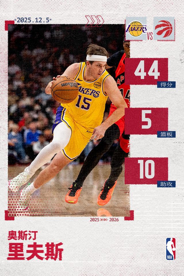里夫斯单场至少40分5篮板10助攻5三分 成湖人队史