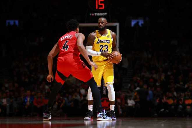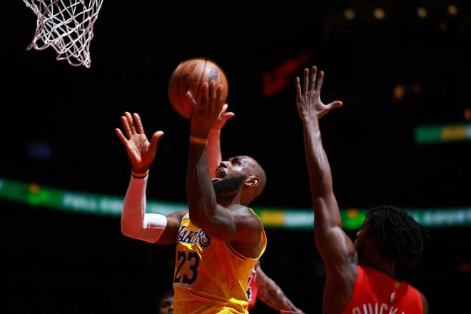 湖人:里夫斯44分5板11助、艾顿17分8板2帽、拉拉维亚14分7板2断、八村垒12分3板、史密斯12分2板2断、詹姆斯8分6板11助。 湖人上一场主场108-125输给太阳结束7连胜,猛龙上一场主场121-118险胜开拓者。本场湖人缺少东契奇与斯马特,猛龙缺少阿巴基、巴雷特与珀尔特尔。首节开局,湖人内外开花取得12-6领先优势,里夫斯率队继续扩大20-10领先优势。湖人继续扩大24-13领先优势,猛龙一波13-2攻势追到差3分。湖人继续扩大领先优势,首节比赛结束湖人31-26领先猛龙。首节湖人24中11,其中三分9中5,詹姆斯5中0得到0+2+2与里夫斯8分,猛龙25中11,其中三分7中2。