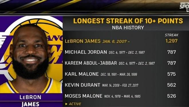 拒刷纪录!詹姆斯制胜助攻助湖人绝杀 连续129