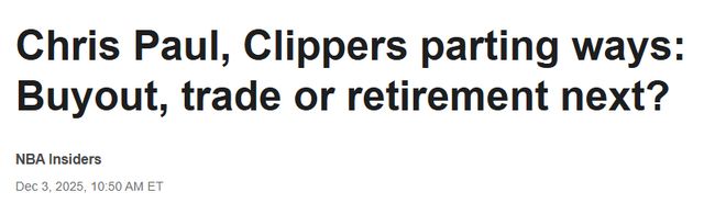 上赛季在马刺打满全部82场首发的保罗,本赛季为快船出战16场比赛,场均仅登场14.3分钟,贡献2.9分和3.3次助攻,而快船目前仅取得6胜16负的惨淡战绩,深陷困境。 快船需等到12月16日才能交易保罗,不过球队也可以在合适的时间点选择裁掉他并全额支付其360万美元薪水,或与他达成买断协议。 球队接下来将何去何从?哪些球队可能有意在赛季剩余阶段引进保罗?保罗曾在11月透露自己计划2026年退役,倘若这便是他生涯的终点,他的NBA生涯又将被如何铭记?ESPN解读了6大相关悬念—— 为何此番洛城重聚未能如愿? 双方最初都怀揣着良好的愿景,但这次合作终究是“水土不服”。