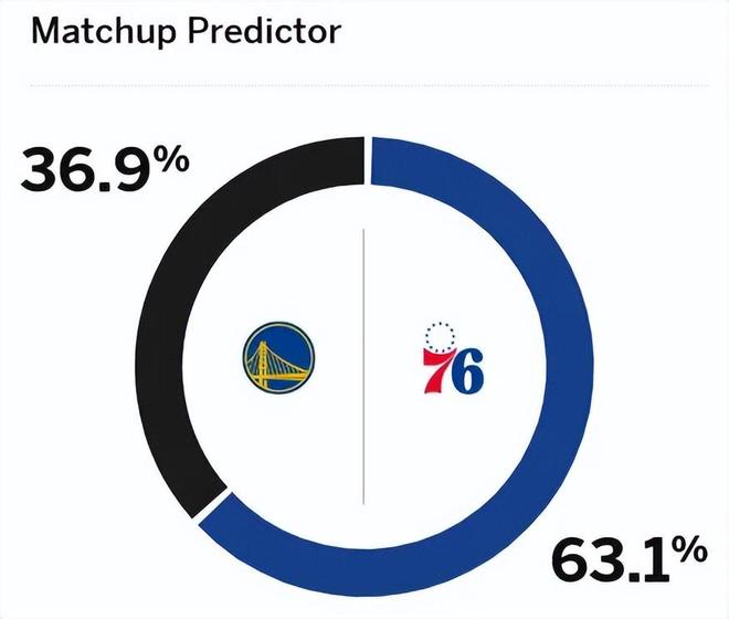 作为对比,费城76人这边,伤病潮也是不遑多让。恩比德伤完,保罗-乔治再受伤,两人打打停停根本没办法跟球队阵容完成磨合,也因此,76人本赛季战绩波动更是大,目前以11胜9负的战绩,排名东部第九位。 赛前,美媒ESPN对本场比赛进行了胜率预测,76人胜率为63.1%,略占上风,勇士队胜率则仅有36.9%。