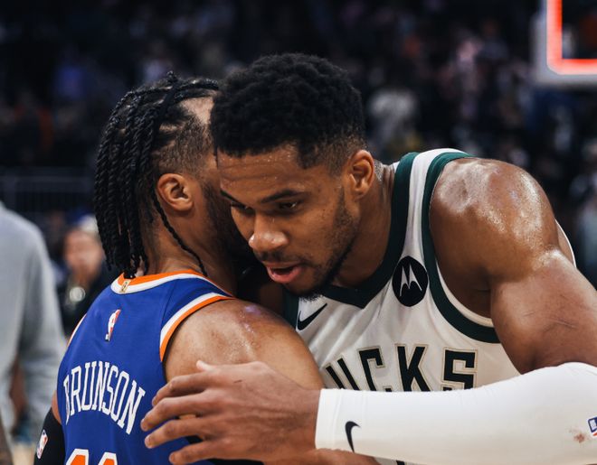 整个尼克斯,除了布伦森核心属性+薪资较低之外,其他都可能是筹码!尼克斯过去几个赛季,逐渐打造布伦森+阿努诺比+唐斯+布里奇斯的四巨头豪阵,上赛季也打到东决,但这套班底很难更进一步,因为布伦森高端局是短板。但他们想得到字母哥,恐怕要彻底拆家,还要准备接受雄鹿附赠的一些累赘合同,每一步都很难!再退一步,一旦尼克斯拆队了,字母哥还愿意来么?只剩布伦森和一个空架子,也没啥竞争力了。
