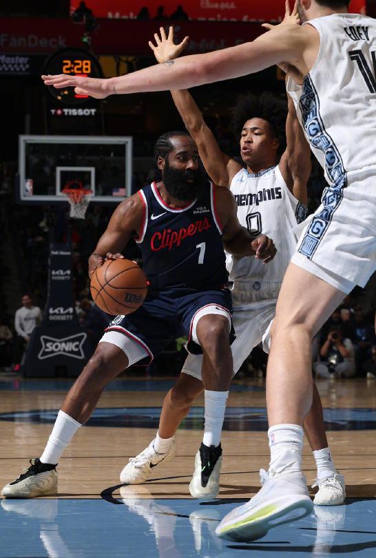 在比赛开打之后,哈登第一节就打爆了以防守立足联盟的灰熊首发控球后卫威廉姆斯,尽管对手一直在通过身体对抗去消耗大胡子,但哈登仍然靠着单节7中5的强势发挥,在首节就砍下了13分,为了限制住哈登的发挥,灰熊第二节开始疯狂对他进行夹击,已经非常成熟的哈登,也没有选择和对手硬碰硬,更多是吸引夹击后,将球交给位置更好的队友去完成终结,在他的率领下,客场作战的快船也带着4分的优势,回到了中场更衣室。 不过在比赛重新开打之后,快船进攻端的状态明显下滑,哈登完全没有了首节大杀四方的感觉,后三节加起来只得到了5分,四节战罢靠着13中6的发挥,仅仅交出了18分、2个篮板和7次助攻的数据。