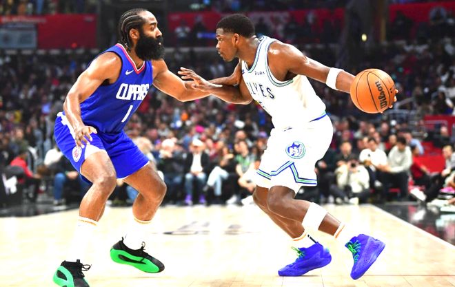 此外,快船还迎回了前队成员海兰德。尽管海兰本赛季在森林狼的出场时间有限,但仍交出了场均3.6分、1.3次助攻,且投篮命中率达48.8%的数据。作为一名兼具替补得分能力与组织潜力的球员,海兰能为快船的第二阵容补充深度。 对于森林狼来说,此举就是补组织短板,冲季后赛上限。森林狼是此次交易的核心受益方之一,尽管球队近年连续跻身季后赛,但2025-26赛季开局表现平平,目前仅排名西部第六,而“控卫位置薄弱”是制约球队上限的关键痛点。本赛季,迪文琴佐虽担任首发控卫,但表现中规中矩,导致超级巨星爱德华兹被迫承担起主要组织任务——这一安排虽暂时解决了进攻梳理问题,却极大限制了爱德华兹在得分端的爆发力。而哈登的加盟,将彻底填补这一短板:本赛季哈登场均能贡献26.9分、5.6个篮板与8.4次助攻,投篮命中率43.7%,三分命中率36.8%,他的传球视野与进攻创造力,既能为爱德华兹、甚至是戈贝尔输送火力,哈登又能自身主导进攻,让森林狼的进攻体系更具层次感。
