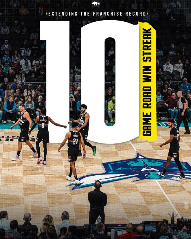 掘金灭黄蜂豪取客场10连胜:约基奇28+9+11助攻超