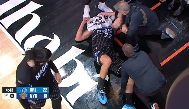 首节还剩4分43秒时,小瓦格纳完成对布伦森的抢断后,率先冲至篮下埋伏,队友布莱克为其送出空接传球,尼克斯内线胡克波尔蒂在封盖传球的过程中对小瓦格纳犯规。小瓦格纳落地姿势十分别扭,随即痛苦地抱住左膝。 同为德国籍球员的胡克波尔蒂显然对这次伤病心怀愧疚,上前向小瓦格纳表达了关切。在场上倒地许久后,小瓦格纳在兄长莫里茨-瓦格纳和新秀彭达的搀扶下离场,离场时左腿已无法承重。