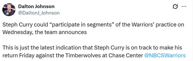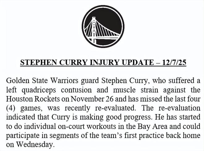 库里有望本周六复出战森林狼!勇士官方更新伤