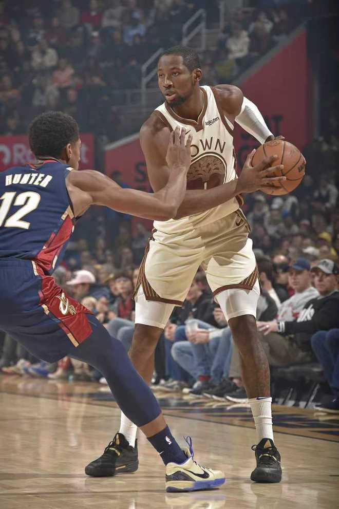 数据统计 勇士:库里与巴特勒等多位球员缺席,波斯特12分9篮板3盖帽,希尔德3记三分13分7篮板,斯潘塞3记三分19分7助攻,桑托斯14分,波杰姆斯基10分。 骑士:米切尔29分7记三分,莫布利18分10篮板,泰森11分11篮板,加兰17分。 比赛回顾 勇士过去两场连输雷霆与76人遭遇2连败,骑士上一场主场130-117战胜马刺。本场勇士缺少库里兄弟、巴特勒、追梦、霍福德与梅尔顿,骑士缺少阿伦、球哥、梅里尔、斯特鲁斯与南斯。首节比赛,双方开启疯狂打铁模式,勇士只有23中4低至17.4%的投篮命中率,其中三分11中2。骑士也只有25中7低至28%的投篮命中率,其中三分10中0,首节结束勇士12-18落后骑士。勇士在上一场首节仅得到10分后,本场首节仅得到12分,连续两场首节低迷。