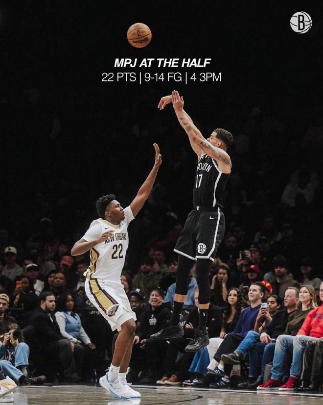 数据统计 鹈鹕:墨菲23分4板4助2断、贝18分6板2助、麦戈文斯16分、费尔斯14分2板5助。 篮网:小波特35分9板3助2断、夏普16分3板3助、克拉克斯顿14分10板10助3帽、克洛尼10分6板、曼恩10分5板4助。 比赛回顾 鹈鹕过去5场遭遇5连败,且前23场只有3胜20负位列联盟倒数第一,篮网上一场主场110-123输给爵士。本场篮网缺少托马斯与海史密斯,鹈鹕缺少锡安、穆雷、普尔与琼斯多位主力。首节比赛,篮网在前6分半钟仅14-13领先1分,篮网很快多点开花打出一波16-3攻势扩大13分优势,首节结束篮网35-24领先鹈鹕。