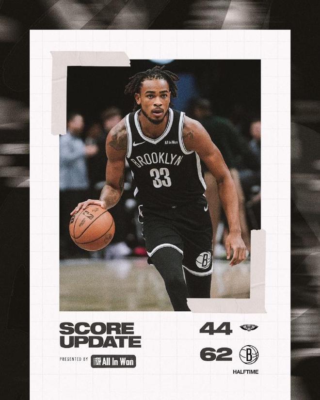 次节比赛,双方均是单节不足30分,但篮网限制鹈鹕连续两节不足25分。篮网在前3分钟维持37-26领先优势,小波特率队继续扩大41-28领先优势,篮网之后持续压制鹈鹕。篮网单节27-20再赢7分,上半场结束篮网扩大62-44领先鹈鹕18分优势。前两节比赛,小波特已经14中9得到22分。