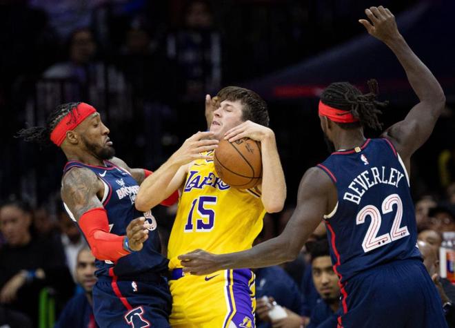 NBA今日常规赛——洛杉矶湖人客场挑战费城76人,湖人112-108力克76人! 球员数据: 湖人(客队):东契奇31分15板11助2帽、詹姆斯29分7板6助、八村塁17分6板1助、艾顿14分12板2助、里夫斯11分4板5助、拉拉维亚4分2板、海斯3分5板2帽、文森特3分1板、范德比尔特1助 76人(主队):马克西28分7板9助2断2帽、恩比德16分7板2助、埃奇库姆15分5板3助、乔治12分6板2助、德拉蒙德11分12板、麦凯恩8分1板1助、格莱姆斯7分8板2助、巴洛7分4板、沃克4分4板