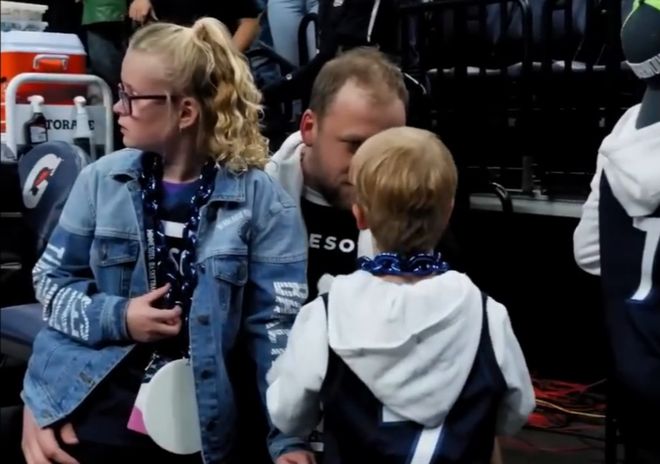 今年3月,在对阵鹈鹕的比赛,森林狼教练组做了一个暖心的决定。 安排老将乔·英格尔斯首发出战,他的儿子雅各布患有自闭症。