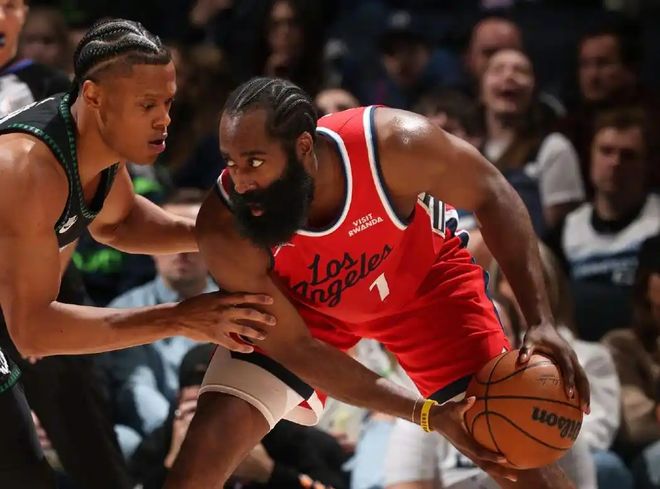 这场比赛堪称快船整个赛季的缩影:高开低走,习惯性崩溃。詹姆斯·哈登拼尽全力,18投10中,砍下34分、5个篮板和6次助攻,甚至在比赛中一度超越了卡梅隆·安东尼,升至历史得分榜第10位。 但当比赛进入决胜时刻,熟悉的剧情再次上演。第四节,森林狼打出一波17-5的攻势完成反超,而快船全队似乎只有博格丹诺维奇还能零星得分。最后关头,哈登绝平三分弹筐而出,他只能沮丧地低头离场。
