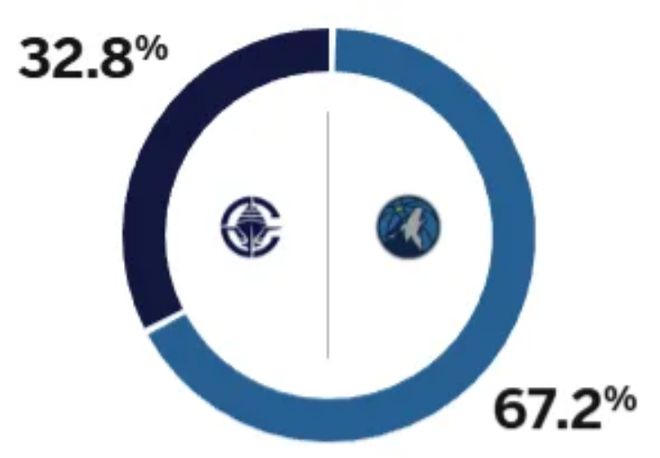 赛季至今,快船仅仅取得6胜17负的战绩,排名西部倒数第三。赛前,美媒ESPN对本场比赛进行了预测,快船胜率仅有32.8%,而森林狼胜率则高达67.2%,差距非常明显。