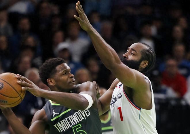 快船队开局防守不错,让对手来了一个24秒违例,进攻端卡子哥连续得分。爱德华兹双手暴扣,麦克三分命中,柯林斯answer ball,哈登抢断+得分,邓恩自投自抢,爱德华兹又失误,邓恩底角三分,快船14-5领先。兰德尔得分止血,哈登突破抛投,迪文飞身上篮,祖巴茨抛射,麦克中投,卡子哥弧顶三分,两位数的分差。 轮换阵容上来,哈登带队顶住压力,没有挖坑,攻防两端表现不错,首节取得12分的领先优势。森林狼的进攻一言难尽,失误又多,打得太松了,看不起快船队?