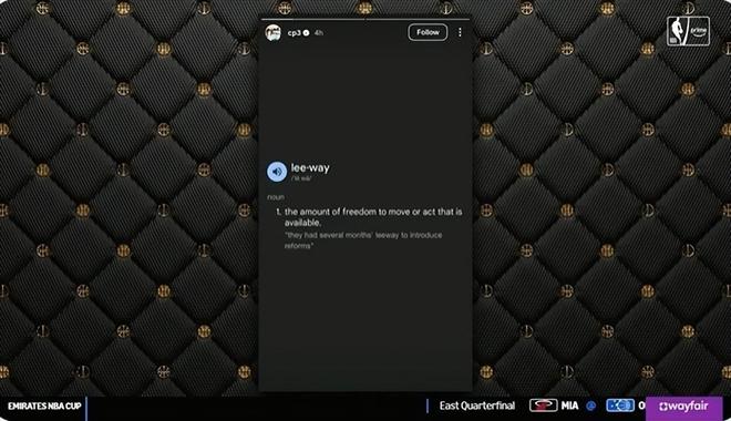 在球队客场之旅前,保罗曾在Instagram发布《牛津词典》中“leeway”一词的释义截图,暗示快船队内存在缺乏责任感的问题,这可能就是此次事件的导火索。Haynes讲述如下—— 这件事发生在快船上一场主场对阵达拉斯独行侠的比赛中,当时已经到了第四节。彼时科怀-莱昂纳德正受出场时间限制,有消息源向我透露,莱昂纳德在对位克莱时,出现了明显的体能问题 —— 他在长时间休息后重新登场,很难跟上克莱的脚步。