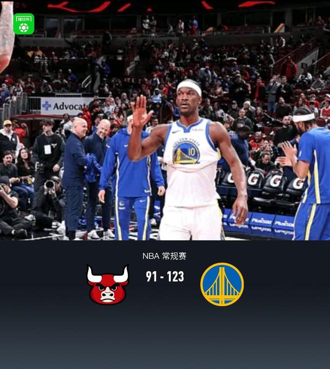 勇士背靠背123-91大胜公牛,巴特勒复出19+8+6,波