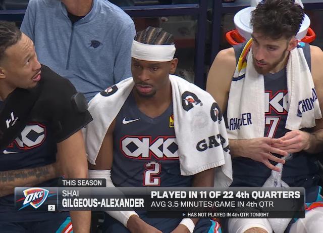 打第四节成奢望?雷霆22胜1负 SGA只打11个第四节