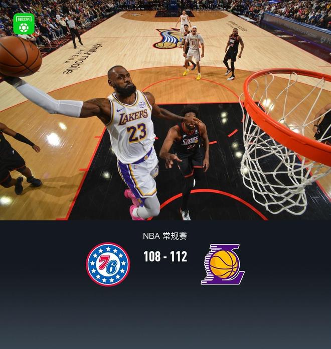 湖人112-108险胜76人,詹姆斯29+7+6,东契奇31+15+1