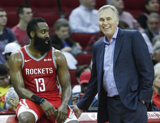 没错,被交易至火箭、拥有专属舞台、并与德安东尼联手,这一系列变故成就了一代传奇。一夜之间,哈登成了联盟顶流:标志性的大胡子、全网疯传的晃倒名场面(抱歉了,韦斯利-约翰逊)、源源不断的得分,让他全方位实现了跃升。 倘若他从未离开雷霆会怎样? “我确实想过这种可能性,”他说,“我大概率成不了现在的自己,也不会有专属的哈登产品线——我现在都出到第十代签名鞋了。如果留在雷霆,这些恐怕都不会发生。不过,我或许已经拿到总冠军了,谁知道呢?” 那再假设,若在火箭调教他的不是曾打造“七秒或更少”进攻体系的德安东尼,又会如何? “天呐,”哈登说,“他是个天才。我觉得他为篮球变革做出的贡献远未得到足够认可,现在联盟各队都在用的打法,他早就带领太阳和我们火箭实践过了。”