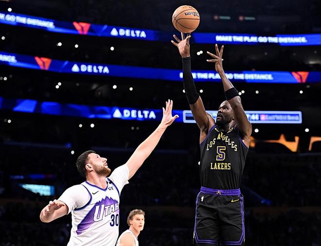 本场比赛中,湖人的先发中锋德安德烈-艾顿(DeAndre Ayton)的表现依然是非常稳定的。艾顿全场出场31分24秒,投篮7中7,以100%的命中率得到了14分12篮板2助攻1抢断1盖帽的数据,还有4次犯规,正负值为+10。艾顿在进攻端效率突出,他在对手内线的威胁非常大,对手也没有办法对他进行有效地限制。艾顿在防守端的表现同样是可圈可点的,他也同样能够发挥出自己在防守端的特点。艾顿在篮板保护和护筐方面的表现同样是可圈可点的水平。总体来看,艾顿在攻防两端都发挥出了自己的特点,起到了内线中流砥柱的作用,他也为球队的胜利做出了巨大的贡献。不夸张地说,以艾顿在本场比赛中所展现出来的状态,如果他能够得到更多的球权和出手次数作为支持,湖人可能会赢得更加轻松。