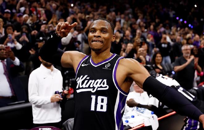 第四节决战,威少45度三分坚决出手一箭穿心,随后罚球线中距离跳投再次稳稳命中,末节个人连砍7分,国王反超步行者2分。拉文运球失误,内姆布哈德和马瑟琳连中三记三分,西卡卡姆反击突破上篮再打进,步行者一波流重新领先到7分。威少背身跳投还能命中,下半场真是打疯了,但也于事无补,最终,国王105-116不敌步行者,逆转失败!
