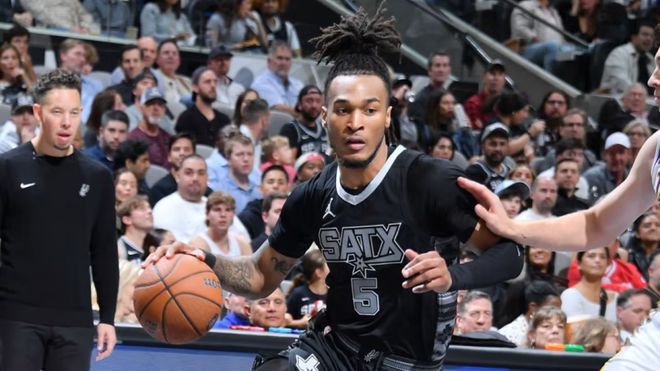 4.圣安东尼奥马刺队 马刺队得到字母哥,雄鹿队得到卡斯尔、巴恩斯、奥利尼克、麦克劳林、2027年首轮、29年首轮、32年首轮。 此前圣奥东尼奥当你记者曾表示,球队不会将卡斯尔和哈珀两位年轻球员,放入任何交易之中,可他们同样知道, 能够吸引字母加盟的从来都不是什么福克斯、巴恩斯这样的即战力老将,只有卡斯尔和哈珀才能让雄鹿队产生兴趣。 球队给出卡斯尔之后,哈珀能以2号位身份进入首发,而在替补阶段,他也能代替福克斯组织球队进攻。而雄鹿队在得到以上筹码之后,到期合同可以为球队提供薪金空间,在休赛期签约明星球员,围绕卡斯尔建队球队也有了年轻核心,同时还能交易巴恩斯再得未来选秀权。