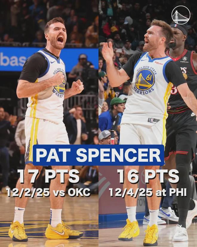 在为勇士发展联盟队效力时,斯潘塞连续受伤接受手术,前途一片灰暗。 27岁的他没有放弃,依然全心全意的在发展联盟的赛场上征战,用完美的表现打动了勇士管理层和主帅科尔,获得了一份双向合同。 当斯潘塞首次踏上NBA赛场时,已经接近28岁,长着一张2k建模脸的他被认为就是勇士的吉祥物,没有多少人相信这个看起来比库里还老的新人真的能够在NBA赛场上做些什么了不起的事。 用了四年时间,又或者说用了八年时间,经历了各种常人难以想象的曲折之后才最终踏上NBA赛场的斯潘塞却对自己充满了信心。 “我从不对自己设限,我知道这是漫长的旅程,需要付出大量努力,但我从不怀疑自己。”斯潘塞说道。