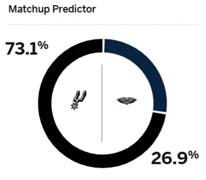 赛前,美媒ESPN预测本场比赛的实时胜率,鹈鹕胜率仅有26.9%,马刺队胜率则高达73.1%,差距非常明显。 今天比赛,首发阵容方面,鹈鹕队这边,赫伯特-琼斯迎来复出,主帅排出的最新首发五人组为:费尔斯、墨菲三世、赫伯特-琼斯、奎因、贝;马刺队这边,文班亚马(小腿伤)将继续缺席,首发阵容则为:达龙-福克斯、斯蒂芬-卡斯尔、德文-瓦塞尔、哈里森-巴恩斯和科内特。