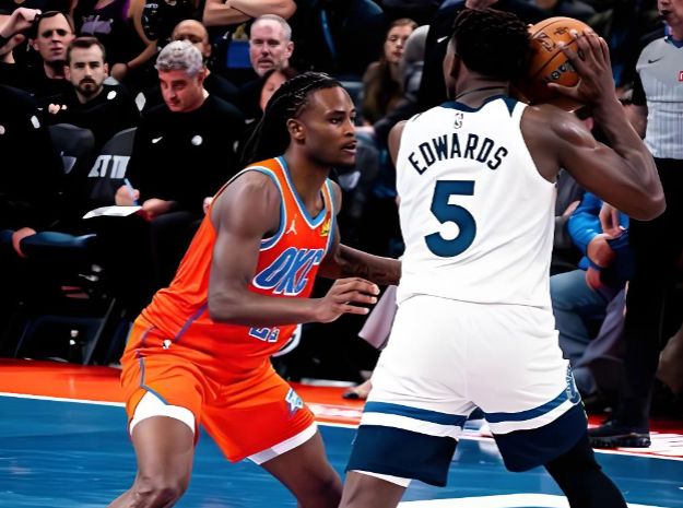 摊开数据单,场均出场27.8分钟,个人贡献8.5分3.1篮板2.5助攻2.3抢断,相比于单调数据,高居抢断榜单第一位的表现绝对是意外惊喜。 在这场大胜太阳的比赛中,面对本赛季抢断联盟第一的太阳,狄龙全场16投4中,吉莱斯皮5中1;面对太阳攻防两大主力,完全被压制到毫无存在感。 而根据统计数据,本赛季雷霆面对湖人时,东契奇被华莱士防到全场20投仅19分,对阵勇士把库里限制到13投11分,对位莫兰特更是18投11分。