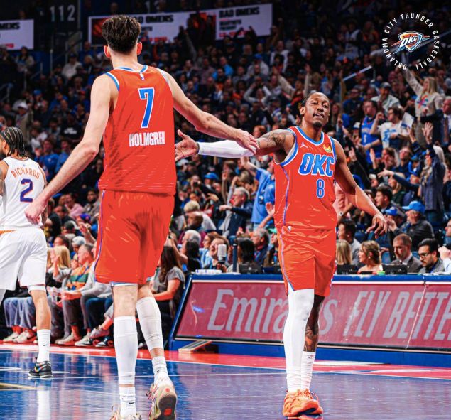 雷霆三巨头在场上还没有太多发力,比赛就已经失去悬念,三人都只打了三节比赛,合计轰下67分。这当中亚历山大打了26分钟,15投11中,三分4中3,拿到28分8助攻,正负值+43;霍姆格伦打了24分钟,13投9中,三分4中4,拿到24分8篮板3盖帽,正负值+33;杰伦-威廉姆斯打了22分钟,8中5,拿到15分5篮板5助攻。 |