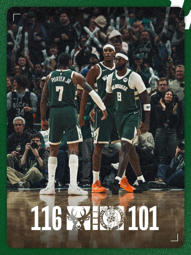 末节决战,波蒂斯连中远投,库兹马强攻篮下得分,雄鹿多点开花,打出了11比4的攻势,将分差扩大至14分。绿军持续外线打铁,布朗上篮得分,道格里弗斯请求暂停。科尔安东尼与布朗对射远投,波蒂斯也有三分球命中。怀特上篮打进,普理查德连续单打不中。 科尔安东尼、波特连续强攻篮下取分,雄鹿将分差扩大至21分。冈萨雷斯外线得分为凯尔特人止血,希姆斯篮下得分,密尔沃基锁定大局。西蒙斯2罚全中,距离终场不足2分钟,雄鹿领先18分,道格里弗斯换上板凳席末端的球员。两队开始在场上练兵,比赛时间逐渐走完。最终,雄鹿以116比101完胜凯尔特人,得以上演14分逆转好戏。 雄鹿逆转凯尔特人