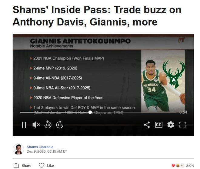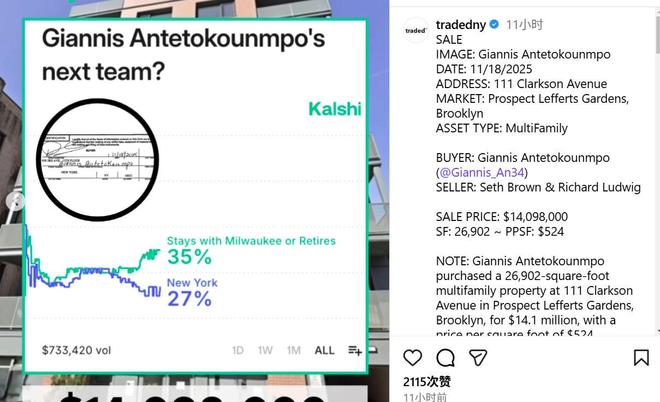 被曝豪掷1410万美元在纽约买房!字母哥是在为赴尼克斯提前做准备?美薪资专家晒出2换2潜在交易方案。