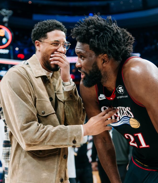 时隔19个月轰39+9!恩比德赛后与哈利相谈甚欢 美