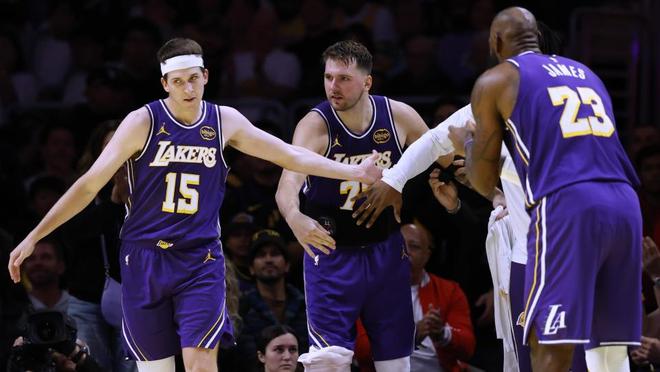 火箭队目前以10.4的净效率值高居联盟第二,这样的实力甚至让球队当前16胜6负的战绩都显得有些“保守”,其真实战力或许还远不止于此。 这支球队如今已然成为攻防两端均属顶级的强队。37岁的杜兰特用赛场表现证明,自己依旧能担起球队进攻核心的重任。而且他并非孤军奋战,申京、阿门、小史密斯以及谢泼德这几位球员,本赛季场均得分均创下个人职业生涯新高,为球队提供了充足助力。 伊森的三分球命中率达到50.9%,高居联盟首位;亚当斯的表现同样亮眼,尽管他场均上场时间仅21.6分钟,却以场均4.7个进攻篮板的成绩领跑全联盟。 即便主力后卫范弗利特因前交叉韧带撕裂而赛季报销,火箭队依旧势头强劲、战绩斐然。截至目前,球队的一切都在既定计划中稳步推进。 湖人获评B
