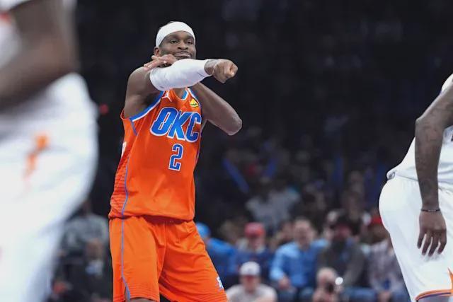没有小瓦的魔术跟团队篮球至上的热火相比,按说配置上没有太多优势。但这场在感官上,魔术也数值碾压了。主要对比在两个点。 第一个,射手。魔术素以空间便秘著称,于是他们搞来了贝恩。现在看,贝恩逐渐见效了。对热火这场,贝恩的手递手三分、定点三分关键,有效破解热火联防,而联防是热火弥补天赋劣势的重要手段。除了贝恩,魔术其他人的底角这场也投得好,进一步惩罚热火。反过来,热火的快节奏篮球有点过于快了,鲍威尔、希罗们忙不迭代的抢投三分,把自己给投死了。热火这赛季强调打快,这一招有效果,热火交出了4年来常规赛最好的进攻成绩单。代价是推速度重量不重质,手风不顺就越来越急躁,这场被打快反噬了。 第二个,单兵防守素质。魔术这边单防吃亏的是琼斯,好歹是个替补。热火这边希罗首发就很难躲,被魔术追着打了不少。观感上,就这一场而言,希罗还没有对面攻防一体的布莱克好用。一个点被爆破,热火需要联防有效才能保护,而联防又给魔术的射手破了。在单兵惩罚希罗这件事上,贝恩也冲在前面,再次验证了自己不只是射手的身份。 贝恩有一种奇怪的观感,这哥们上篮,即使是正面攻筐也有很强的偷感。永远低手,永远身体卡住防守人,从缝隙里把球从下面拨出去。也算是一种适应自身天赋的生存之道。 雷霆 VS 太阳
