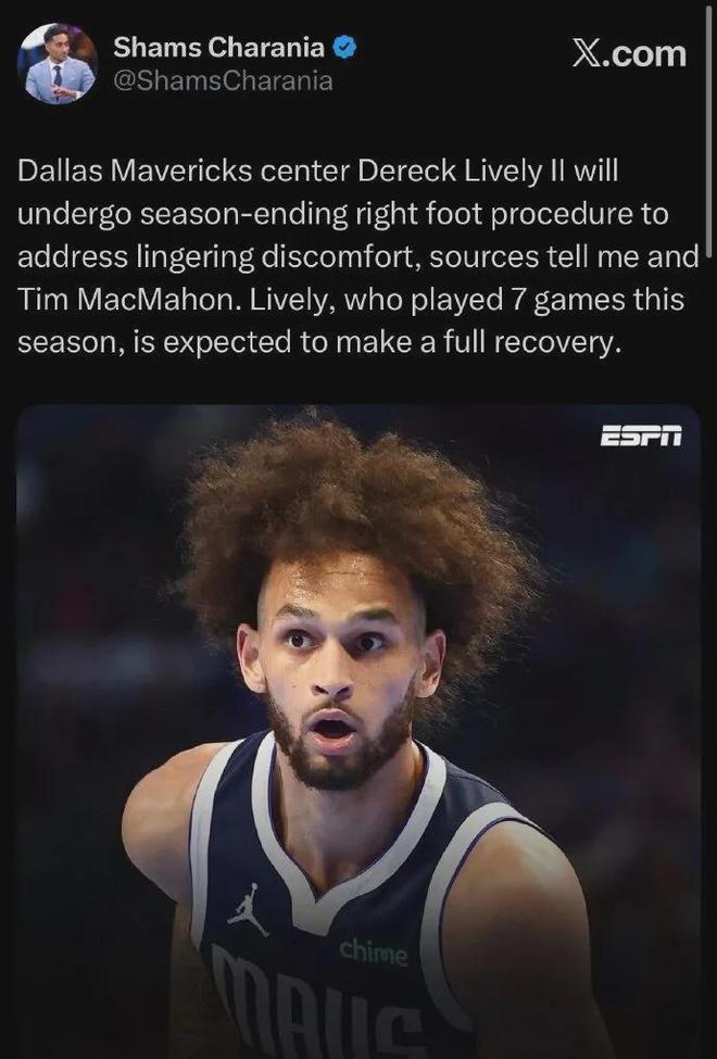 据薪资专家Marks报道,独行侠可以借莱夫利赛季报销,申请262万6680美元的伤病特例。伤病特例是指可以给一名自由球员一份1年期合同,或接收一名正处于合同年的球员。
