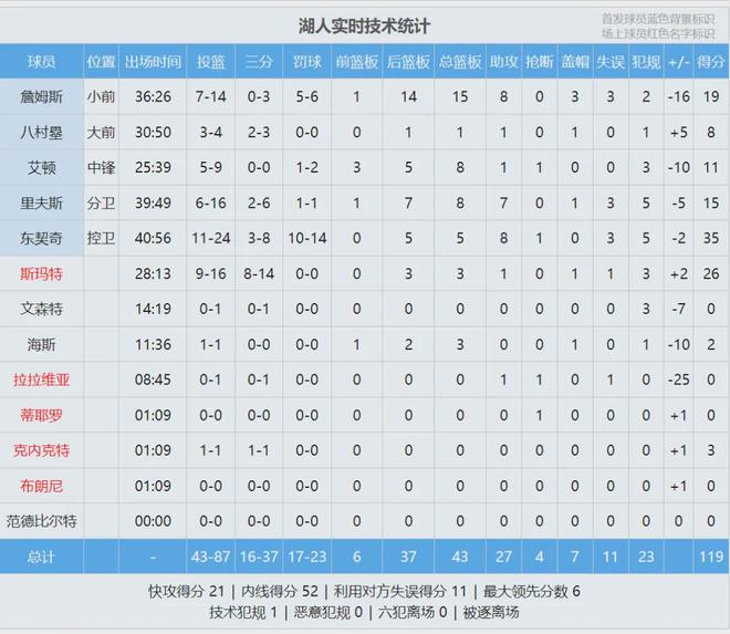 湖人首节砍下30分,进攻还行,但替补被打爆了。马刺替补哈珀单节7分进账,凯尔登-约翰逊首节6中5独得13分。为了多买几只羊,KJ今天拼了。湖人4个替补球员登场,首节合计仅得到2分。第一节打完,马刺39-30领先湖人9分。 第二节尚帕尼连续三分命中,马刺领先到17分打停湖人。文班伤停的这段时间,马刺战绩并没有明显下滑,能打的球员太多了。上半场最后时刻,詹姆斯隔扣科内特,成为湖人第二节不多的亮点。半场战罢,马刺70-58领先12分。 上半场马刺替补轰下29分,湖人替补仅得7分。里夫斯迷失了,半场6中2仅得4分4篮板6助攻2失误。明年夏天里夫斯将跳出合同,成为自由球员,湖人必须决定本赛季是否交易他。第三节开始,卡斯尔和瓦塞尔下起三分雨,马刺领先到20+!