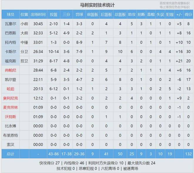 第四节决战,主场作战的湖人起势了。斯玛特单节4记三分,里夫斯上篮打成2+1,最后4分钟湖人追到8分。福克斯和卡斯尔化身客场消音器,三分浇灭湖人反扑。全场战罢,马刺132-119淘汰湖人,恭喜马刺打进NBA杯半决赛。 文班亚马缺席12场,马刺9胜3负。上赛季最佳新秀卡斯尔,14投10中狂砍30分10板6助,正负值+16。福克斯20分4板3助2断、凯尔登17分8板、尚帕尼和巴恩斯各砍16分。东契奇35分5板8助、斯玛特26分、詹姆斯19分15板8助3帽。